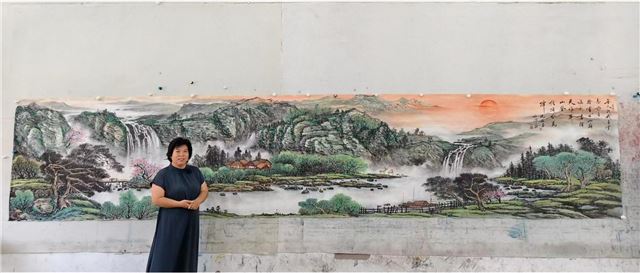 与彭晓梅老师交往的数年中,除了对她的才艺佩服之外,更对她驾驭书画市场的能力更高看一眼。 近几年在宋庄找彭晓梅老师定制大画的人较多,当然正常的一些绘画订单大多是她这里不接才推给别人的,从某种意义和范围讲,是一种品牌的力量所在,艺术和人品在那儿明摆着呢。这也是她在宋庄画家村能够安身立命的原因之一。据彭晓梅老师自己回忆,她几乎每两三年都要画一两张丈二左右的大画,她深知在特定的环境下,大画才能开出大价钱,而且这些构图都是她自己写生或拍照后分多次提炼画成的,都是趁年关、节假日、闭门谢客把自己关在屋里一点一点完成的,这种毅力实在难能可贵,她说创作这些作品、赌的是眼光,如果题材和技法偏离了市场,所有的努力都是付之东流,然而,她是一名幸运者、每次大画完成,都几乎对收藏者是一次惊艳,甚至一些商会的老总,在彭晓梅工作室赏画取画的时候,往往还要蹭一顿彭晓梅老师的亲手饭菜,当然高兴之余。或许是卖画得钱的乐趣,偶尔也能听到她哼几句标准的河南豫剧自我庆祝或陶醉其间,甚至会拿出一套自视珍贵不卖的戏曲人物画诱惑众人眼球,每逢此时她总会说,在所有绘画中,戏曲人物是她从小至今练出来的童子功,并表示今后,可能以此为专攻,在未来若干年把中国人物画兼工带意定为她创作的一个长期目标。从她坚毅的眼神可以看出她的底气十足,从她自信的笑容,可以看出彭晓梅老师一直陶醉在自己的绘画世界里。