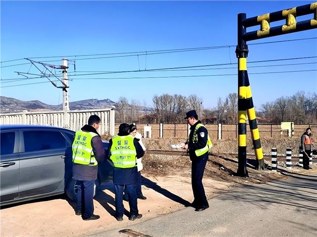 “师傅,过铁路道口一定要提前减速、停车瞭望,确认没有火车再通过,可不能抢行啊!”在黎城县西宋村铁路道口,民警与护路队组建的流动宣传小组,正对过往车辆驾驶员、沿线农户等重点人群开展“面对面”宣讲。宣传人员手持宣传资料,结合道口通行特点,详细讲解铁路道口安全通行规则,着重强调严禁抢行、钻越护栏、在道口停留等危险行为,提醒大家既要保障自身安全,也要维护铁路行车秩序。流动宣讲的方式灵活高效,精准覆盖了过往群众及沿线作业人员,以“零距离”的宣传模式织密了铁路沿线安全防护网。