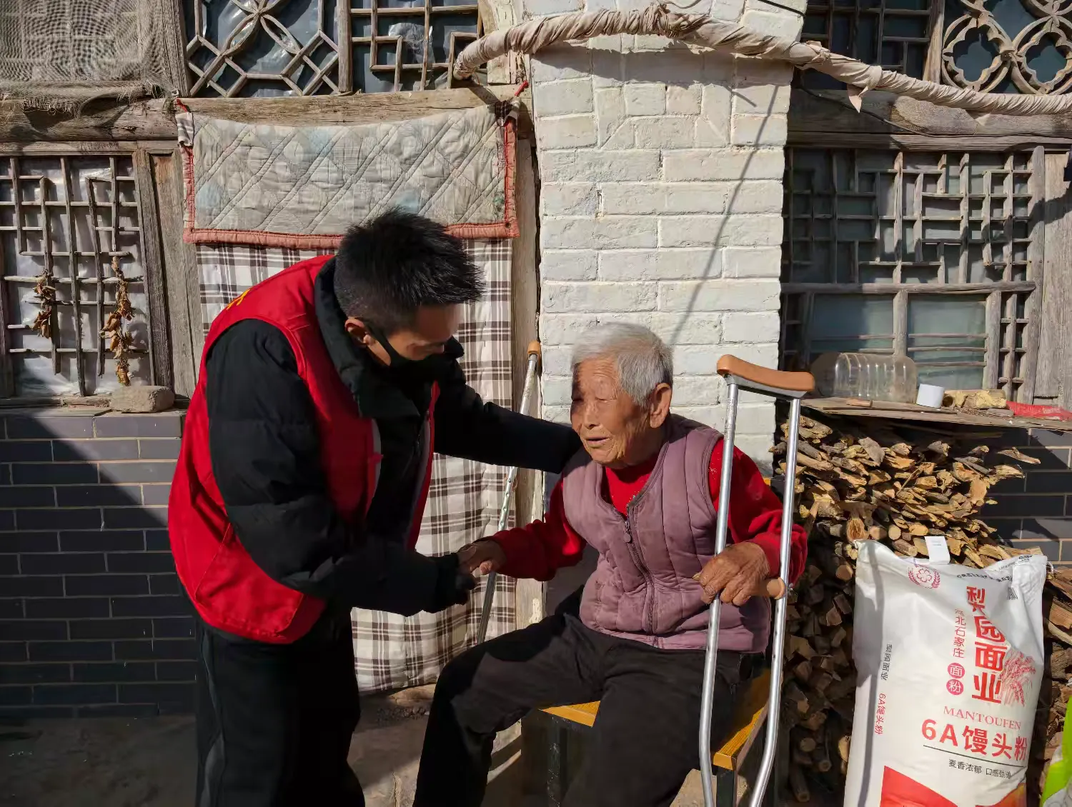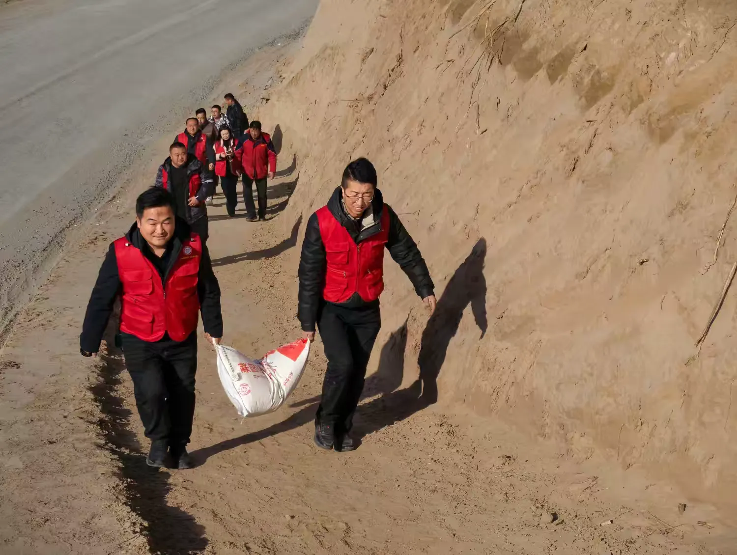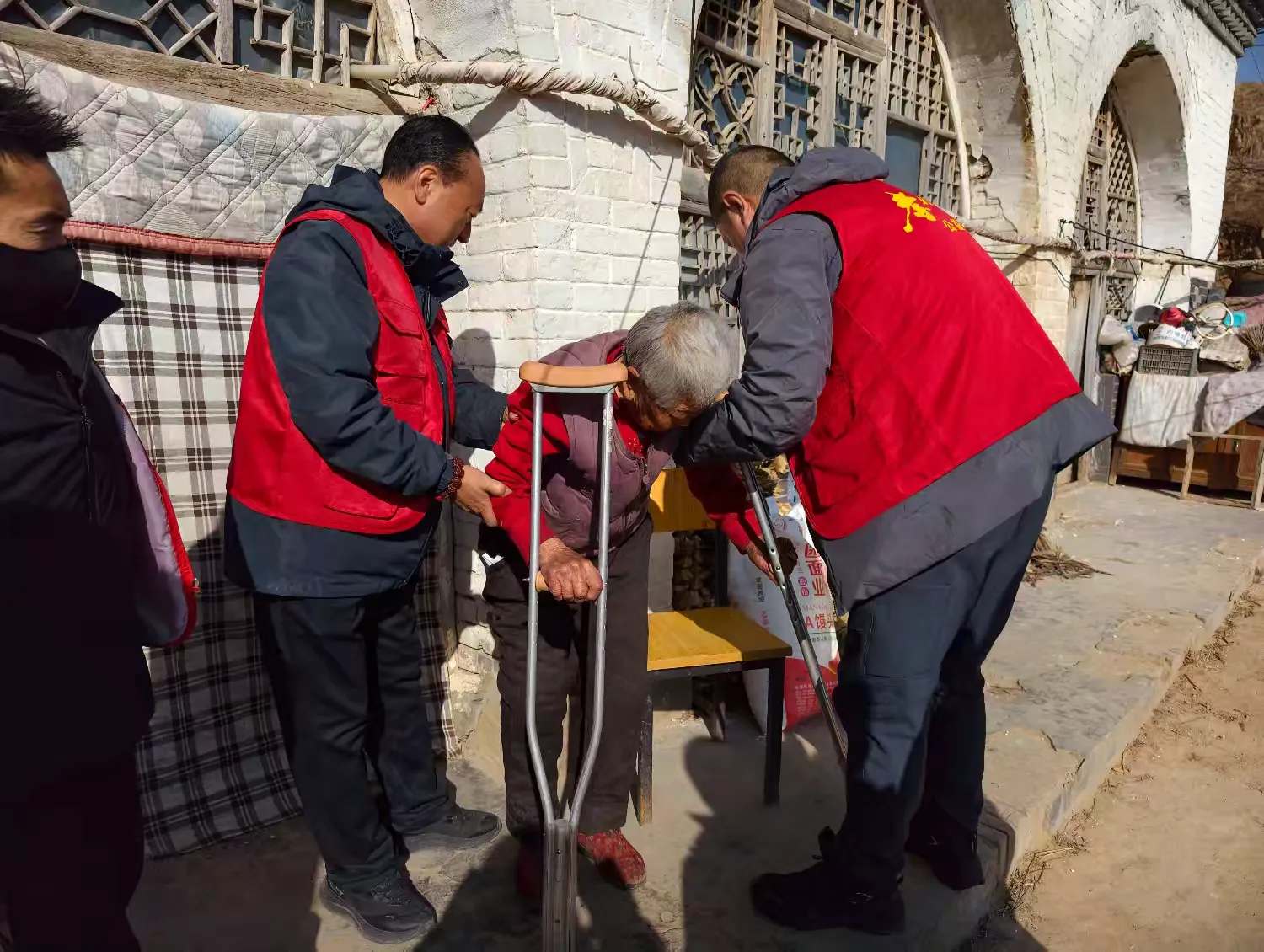 黄土高原的寒风卷着尘土掠过光秃秃的山峁,却吹不散乡间小路上那一抹鲜亮的志愿红。志愿者们踩着碎石与残雪混杂的土路,一步步走向散落在山坳里的独居老人家中。
