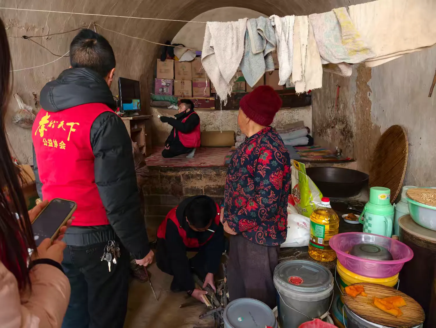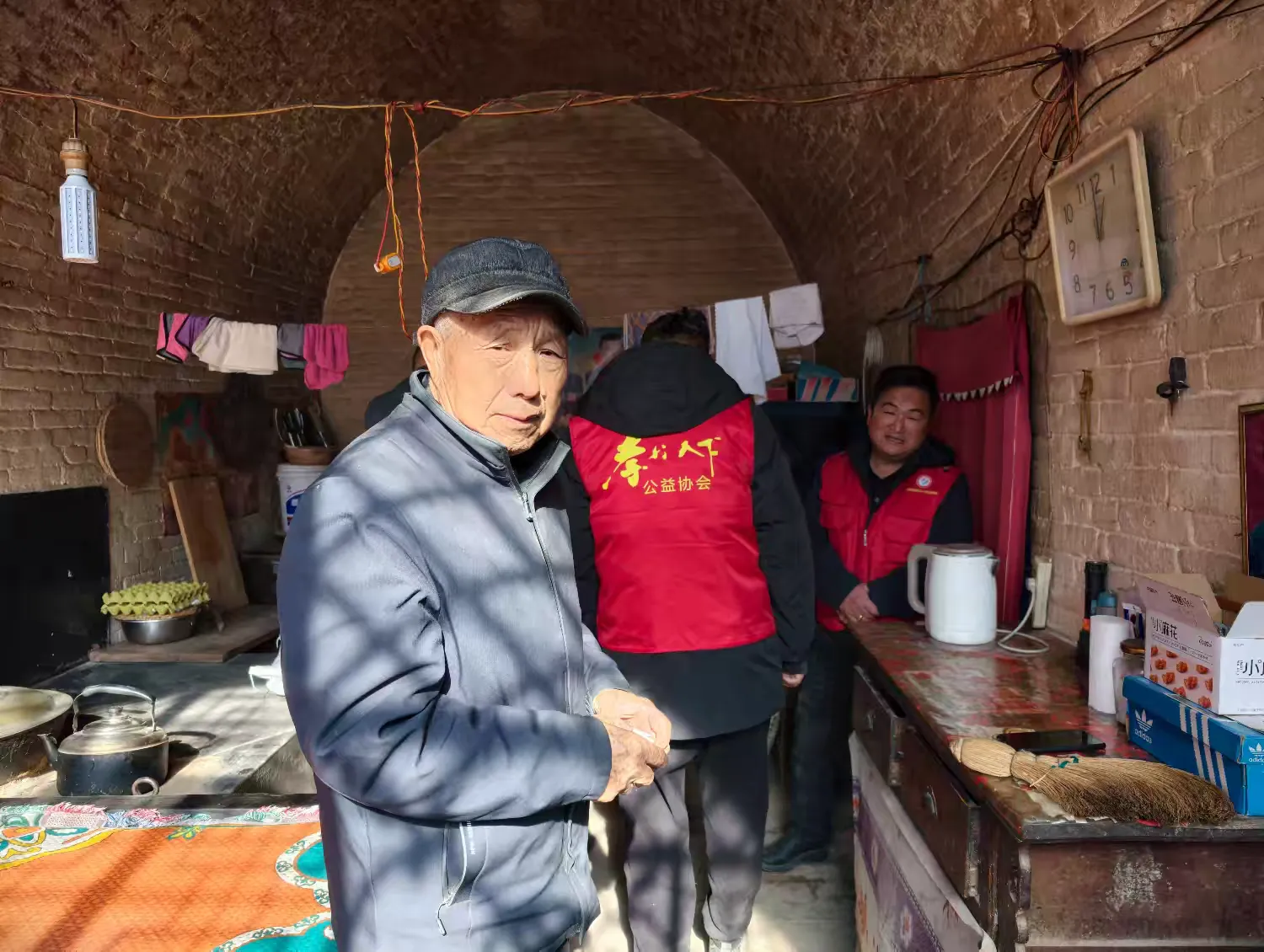 志愿者们带着米、面、油等生活物资走进一个个窑洞院落。昏暗的窑洞内,土炕上的被褥叠得整整齐齐,却掩不住生活的清贫。志愿者们搀扶着拄着拐杖的老人缓缓走出窑洞,让她晒一晒难得的暖阳, 围着听老人讲述过去的故事,也细细询问着过冬的煤够不够、身上的衣暖不暖。他们与拄着拐杖的老人紧紧握手,倾听老人讲述岁月的故事;在质朴的窑洞里,他们仔细查看老人的生活起居,关切的话语驱散了冬日的寒意。老人脸上绽放的笑容,像窑洞外的暖阳,温暖着在场的每一个人。