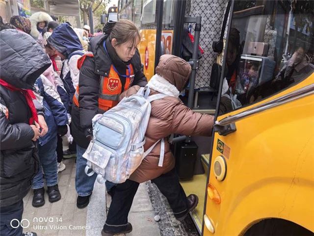 家住银都花园小区的于女士深有感触:“我和爱人都是上班族,以前雨雪天既要送孩子又要赶时间,总提心吊胆。今天这种天气,我以为没有校车接送孩子,正担心时,看见校车接送群里的通知,我一颗悬着的心终于落下来了,有了校车接送,孩子自己就能安全到校,我们也能安心工作了。”