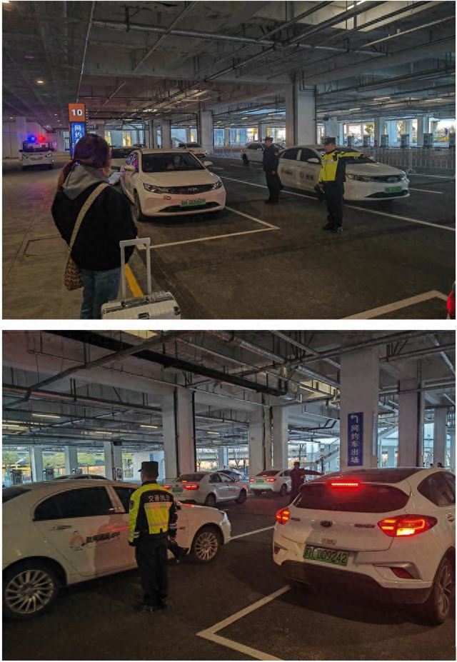 此次客流高峰,是对新网约车点的一次承压测试,也是一次从旅客导引、车辆运行、道路交通标志标线、安全应急设施、环境照明因素、现场管控措施等方面对新网约车点的全面体检。在出站口,管理人员指着矗立两侧的网约车上车点调整通告,热情引导,耐心解释,扩音喇叭循环播放“网约车上车点在右前方”等提醒告知语音。在网约车上车点,交通执法人员热情帮助旅客熟悉新环境,介绍新网约车点寻车方便、遮风挡雨、人车分离等优点,获得乘客理解支持。