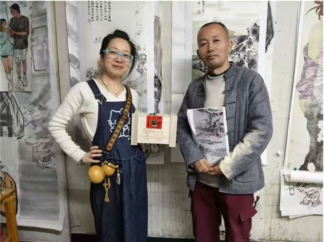 在宋庄的艺术圈子里,甚至包括荣宝斋画院,能画山水、又能画人物、且懂诗词善书法的艺术家少之有少,而"老田尚上"田娟便是其中的厉害角色之一。她善长青绿山水,用她的话来说,一看山势、二看笔质、三看是否脱离行画的俗气。她在画山水构图中,往往添加一两亽具象的小神童植入画面,使画面顿然间逸气回转,其宁静中又隐藏着大自然的无限生机。难怪南方的一些书画经纪人,不但愿意重金收购田娟老师的作品,还愿意无偿地为她搞个展和出书。对此,田娟老师的观点很明确,她表示,市场固然主要、但艺术相对来说更重要。据笔者多次观察和了解,在每次的笔会中,她完成作品的速度几乎是最迟的,甚至是在别人收拾笔墨纸砚进入饭局后,她才完成的。有人不解的问她,你一个堂堂的中美协会员,这是笔会,又不是创作,你画得再好再完美,人家也不会多给你一分钱的润笔费、你这"老田尚上"又何苦呢。而田娟老师不这么认为,她说,对得起客户和对得起艺术都是神圣的,每一个线条都坚持写出来的书法质感呈现的画面效果是不一样的,在田娟老师的潜意识中,从来没有应酬之作,既便当下书画市场很卷的阶段,她还是坚持艺术唯上,从不妥协于行画市场的边缘。