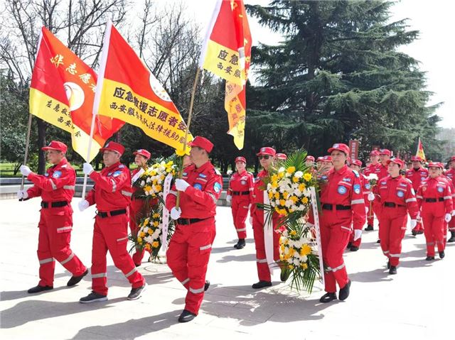 3月27日,中华志愿者协会应急救援工作委员会西安服务队携手陕西省爱心济困协会、陕西省银铃大学老兵学院,在西安烈士陵园举行“缅怀英烈志 共筑中华魂”清明祭扫活动。