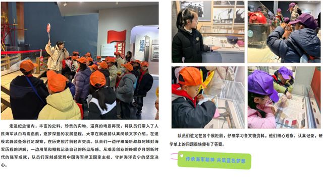 通过此次研学之旅,队员们在行走中感悟历史,在学习中汲取力量,不仅了解了中国海军的发展历程,更懂得了今日和平生活的来之不易。未来,新生中心小学的少年们将以新时代好少年的标准严格要求自己,将爱国情、强国志、报国行融入日常学习生活,努力成长为担当民族复兴大任的时代新人。