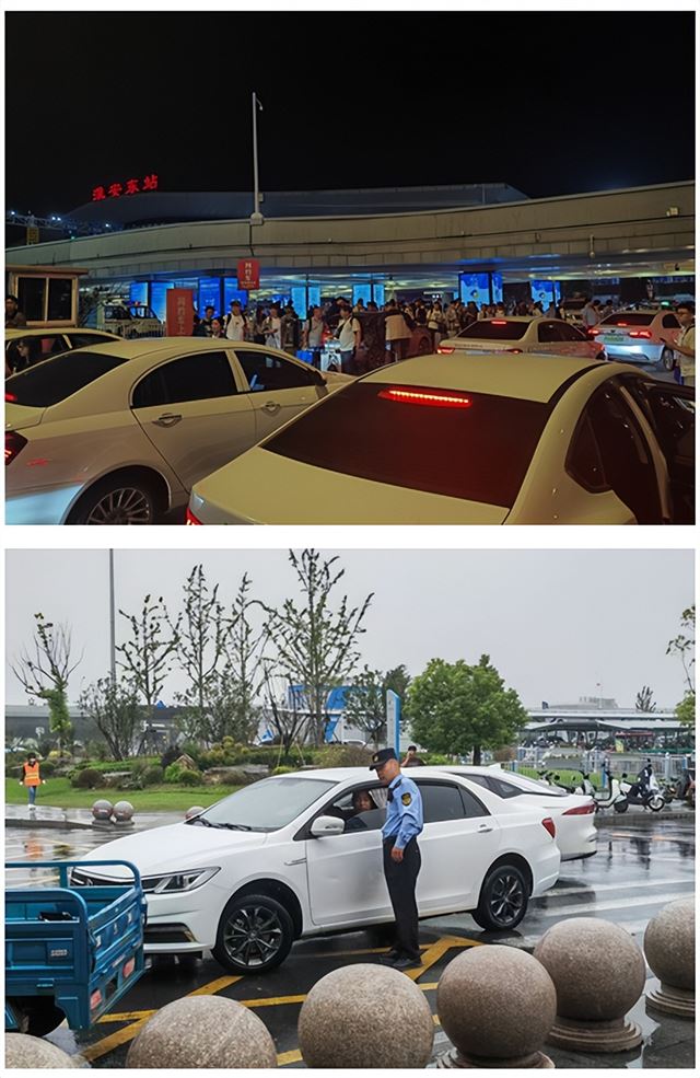 顺畅接驳,美好出行,公交、出租、网约车三线联动,志愿者与管理人员的协同指挥,让旅客出行更加便捷舒适。(张新松 张锦瑞 )