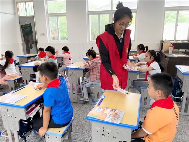 在课堂上,志愿者向学生发放了印有“共护健康成长 汇聚你我力量”标语的绿书签。小小书签不仅是学习的工具,更成为传播绿色阅读理念的象征。学生们纷纷表示要将绿书签放入课本中,以此时刻提醒自己坚持健康阅读。