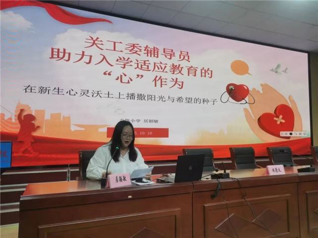 紧接着,为指导各片区学校做好入学适应教育,进一步提升心育效益,优化关工委助力心育工作,市心育名师工作站成员、合陈中心小学居颖敏副校长作了“关工委辅导员助力入学适应教育的心作为”的专题讲座。