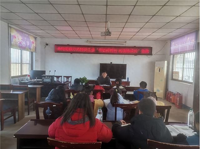 村关工委主任缪善跃、农家书屋管理员高平同志带领学生阅读。他们以读书为纽带,浸润儿童的心灵。孩子们可以尽情地在书的海洋里遨游,感受读书的乐趣。两位辅导员还对文学常识、古典名著中的知识点进行讲解。高平同志对学生作文时遇到的困难与同学们进行互动交流。