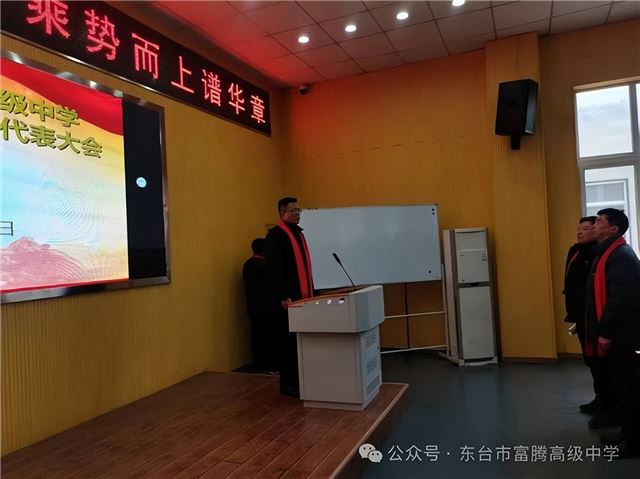 2月6日,东台市富腾高级中学一届二次教职工代表大会在庄严而热烈的氛围中隆重召开。全体教职工胸前佩戴的红色围巾,如火焰般映照着会场,象征着一颗颗为学校发展奉献的赤诚之心。教职工们以饱满的热情和强烈的责任感齐聚一堂,共同谋划学校高质量发展蓝图,浓厚的民主、团结、奋进气息洋溢全场,成为校园民主政治建设进程中一幅动人的画卷。
