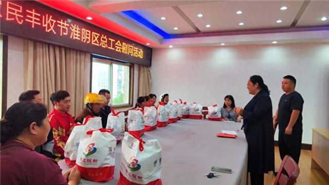 春华秋实,岁物丰成。在中国农民丰收节及中秋、国庆到来之际,江苏省淮安市淮阴区总工会开展“三节”专项慰问活动,向辛勤耕耘在各行各业的农民工、产业工人代表送上节日的祝福与诚挚的问候。