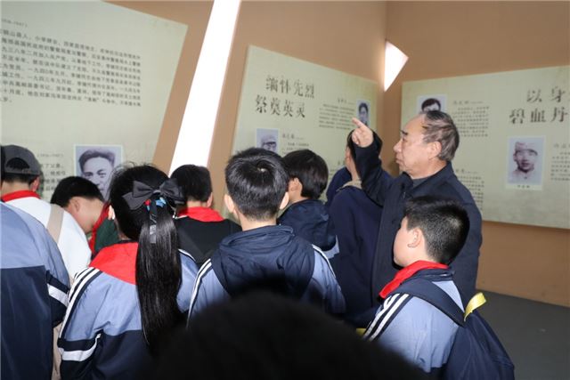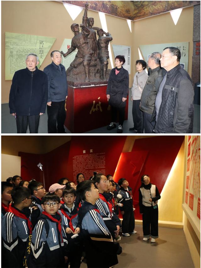 默哀结束后,老少携手走进纪念馆展厅。展厅内,烈士的英名镌刻在烈士墙上,泛黄的书信、布满斑驳弹痕的遗物、清晰的烈士照片,将大家带回了那段艰苦卓绝的革命岁月。老干部们结合自身经历,用真挚质朴的语言,向少先队员们讲述严昌荣团长身先士卒、壮烈牺牲,沈云楼烈士坚贞不屈、英勇就义的感人故事,生动诠释革命先辈忠诚担当、无私奉献的崇高精神。
