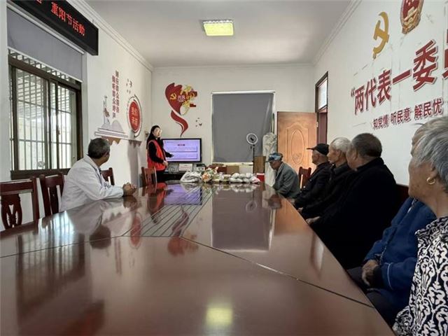 村医务室的医生以“秋冬季节老年人健康守护”为主题展开讲解,结合季节特点,用通俗易懂的语言详细剖析了老年人秋冬高发疾病(如呼吸道感染、心血管疾病等)的预防要点,从保暖方式、作息调整到情绪调节,每一项建议都贴合老人日常生活。