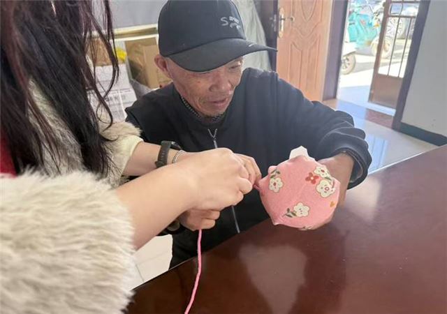 志愿者们早已提前将制作艾草锤的材料分发到每位老人手中,看着眼前的布料、艾草和绳子,老人们都跃跃欲试。有的老人动作娴熟,很快就开始动手制作;有的老人略显生疏,志愿者们便立刻上前,手把手地指导,帮他们整理艾草、系紧绳子。现场一片热闹景象,老人们一边制作,一边互相交流,时不时传来阵阵欢声笑语。