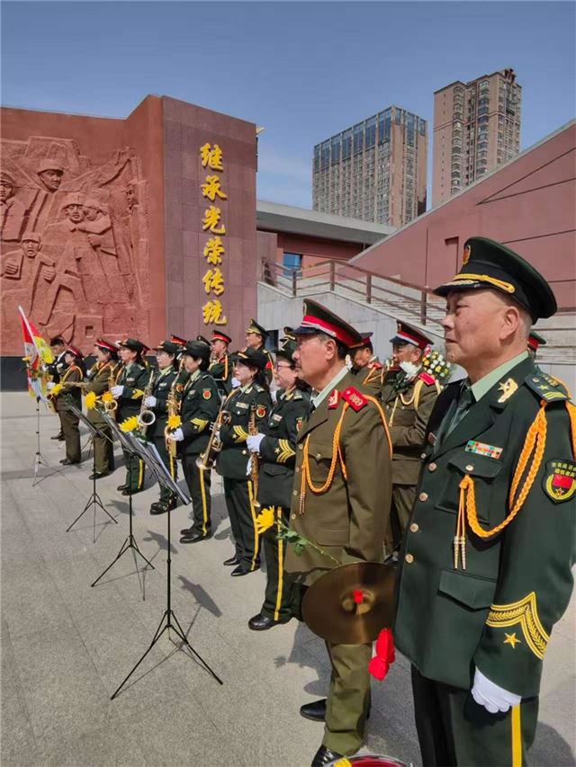 活动由中志协应急委西安服务队队长薛江红主持,现场庄严肃穆,全体人员手持黄白菊花列队肃立。老兵学院军乐队奏响国歌,拉开仪式序幕。陕西省爱心济困协会封悦恭读祭文,字字句句饱含对先烈的追思;陕西省银铃大学老兵学院院长王相亭领誓,全体人员重温入党誓词,誓言铿锵。
