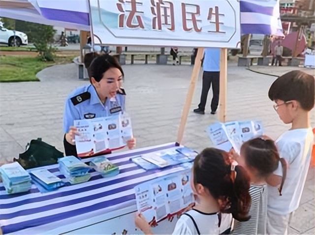 司法所普法摊位前,工作人员针对不同年龄段发放普法手册,用“过马路看红绿灯”“借东西要经允许”等生活案例讲解法律常识,萌娃们仰着小脸齐声回应:“要守法!”,引得周围群众会心一笑。