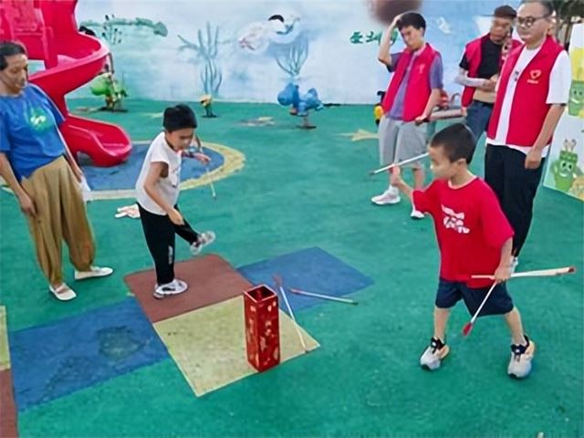 这里,是专属于小朋友们的挑战区,来套个圈圈、投壶挑战赛。小朋友们全神贯注,抛出手中的圈圈和箭矢,命中后的喜悦就像绽放的花朵,小脸上的自豪比奖品还耀眼。