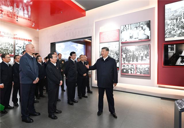 9月24日上午,中共中央总书记、国家主席、中央军委主席习近平在乌鲁木齐文化中心展览馆参观新疆维吾尔自治区成立70周年主题成就展。新华社记者 谢环驰 摄