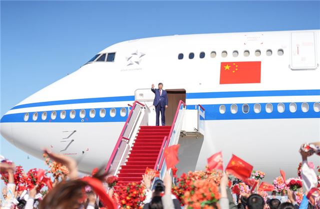 时值秋分,阳光灿烂,碧空澄澈。9月23日,当习近平总书记乘坐的专机,缓缓降落在乌鲁木齐天山国际机场,停机坪上早已成为鲜花、红旗和歌舞的海洋。